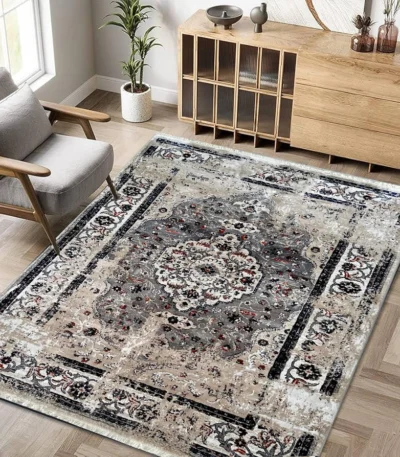 Premium quality rug with intricate design and durable construction. Features grey/beige/cream color. Rugs category. Perfect for home decoration and comfort.