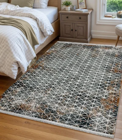 Premium quality rug with intricate design and durable construction. Features grey color. Rugs category. Perfect for home decoration and comfort.