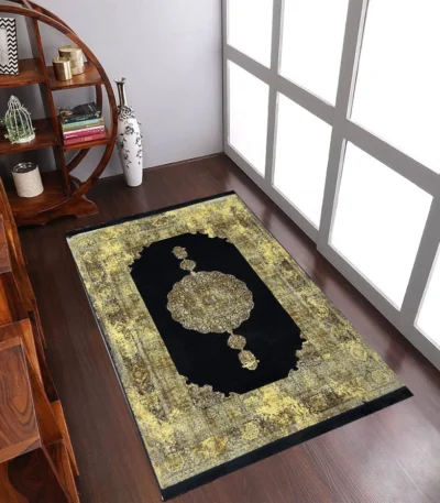 Premium quality rug with intricate design and durable construction. Features black/gold color. Rugs category. Perfect for home decoration and comfort.