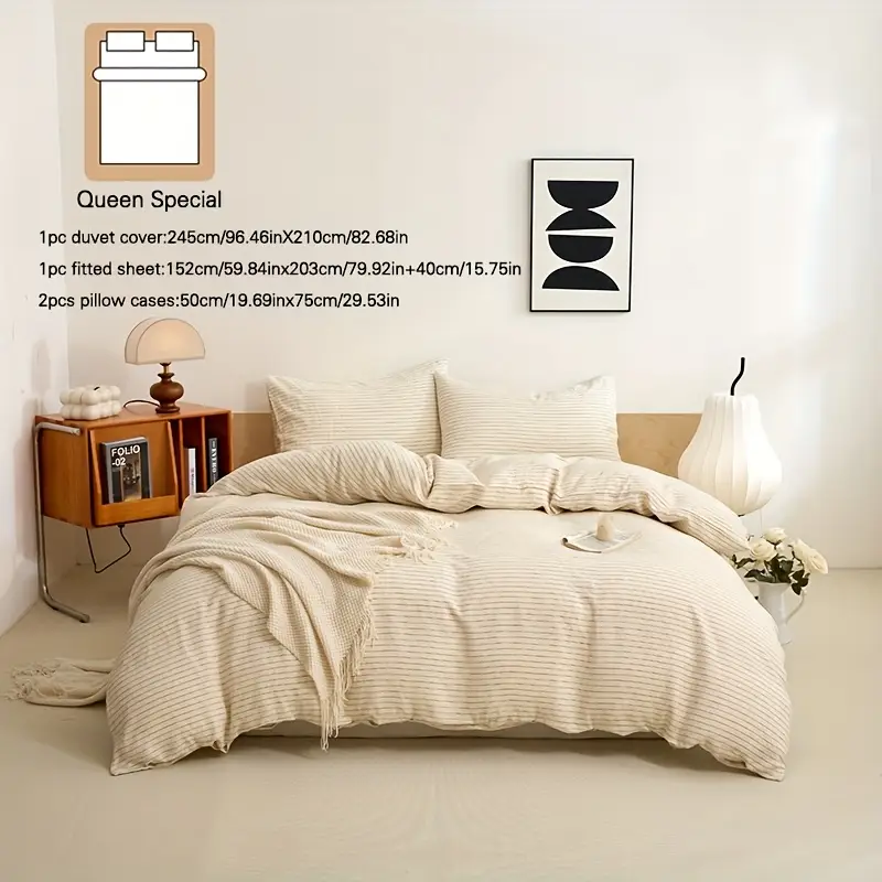 Breathable linen bedsheet set in natural stone wash, casual and durable for everyday luxury.
